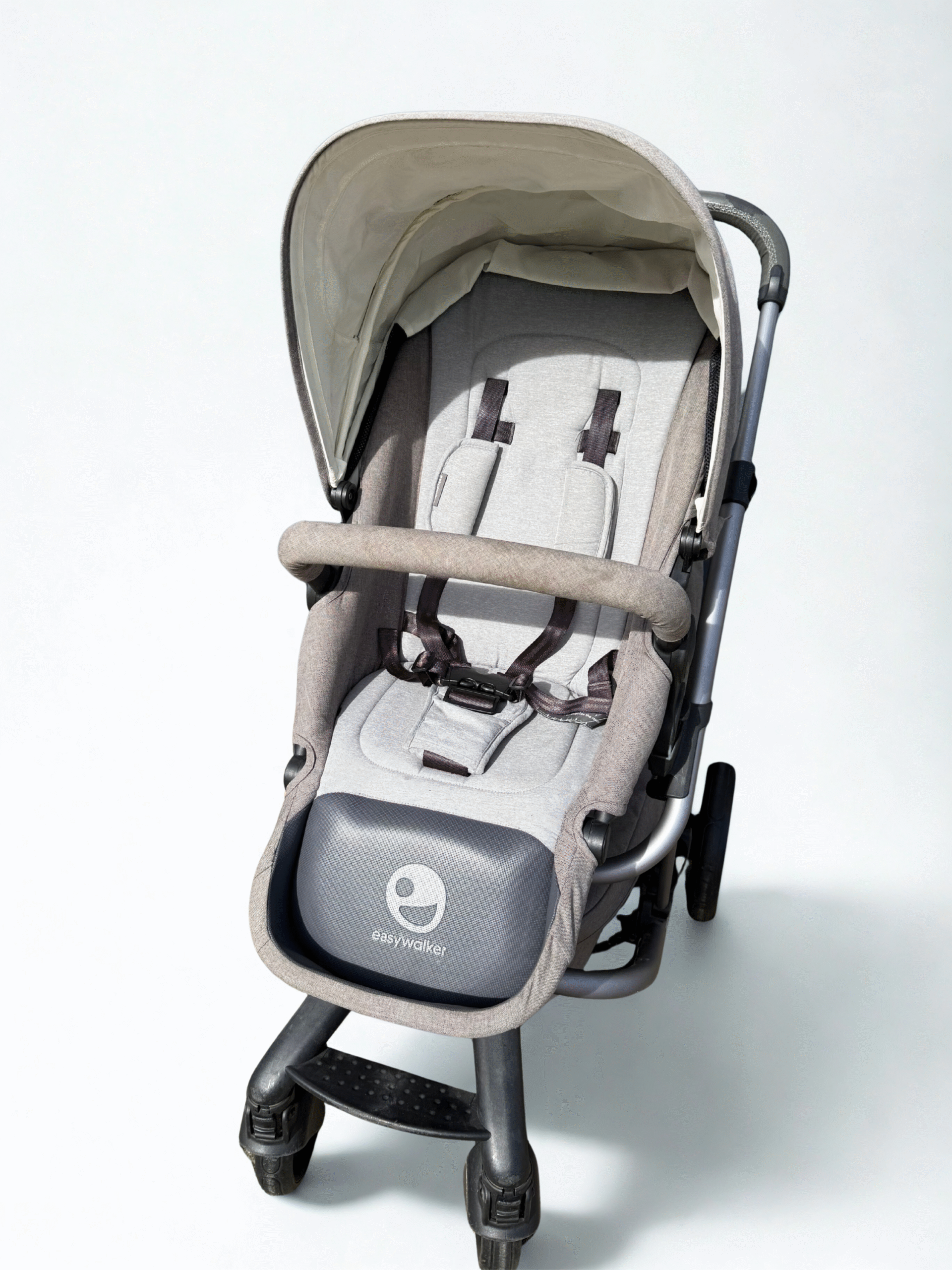 De Easywalker Harvey kan worden gebruikt vanaf de geboorte van je kindje. De eerste 6 maanden maak je gebruik van de reiswieg, waarin je kindje lekker kan liggen en slapen. Vanaf het moment dat je kindje zelfstandig kan zitten kan de wandelwageninzet op het frame worden geplaatst. Hierin kan je kindje lekker om zich heen kijken en de wereld ontdekken! De wandelwageninzet kan in twee richtingen worden geplaatst, zo kan je kindje naar je toe gericht zitten of juist van je af. Ook is de hoogte van het zitje verstelbaar in combinatie met de speciale hoogte adapters. De positie van het zitje is in drie standen te verstellen, waaronder een ligstand. Zo kan je kindje als hij of zij moe is toch nog even lekker slapen in de wandelwagen.