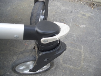 Bij de voorwielen van de Joolz Day zitten twee crêmekleurige klepjes voor het vastzetten van het draaimechanisme van de voorwielen. Wanneer deze niet goed meer werken of zijn afgebroken dan kunnen wij ze voor je vervangen.